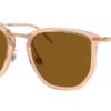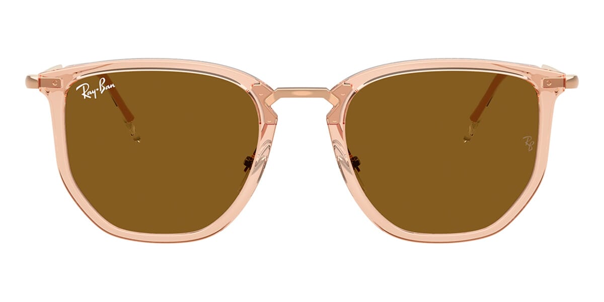 This square Ray-Ban sunglass comes in a beige crystal frame with brown lenses.