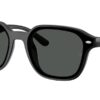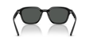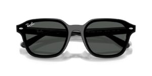 This square Ray-Ban sunglass comes in a black frame with dark grey lenses.