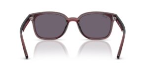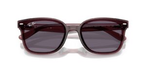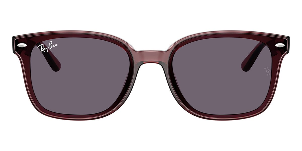 This rectangular Ray-Ban sunglass comes in a dark brown crystal frame with violet lenses.