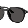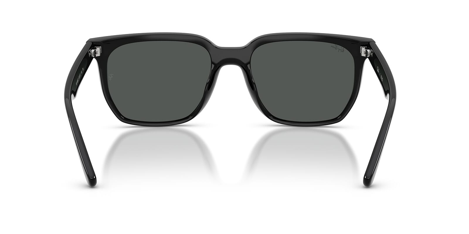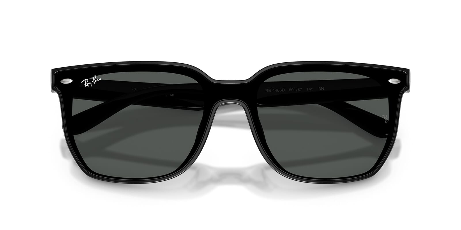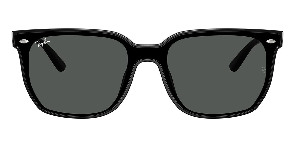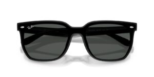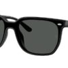 This square Ray-Ban sunglass comes in a black frame with dark grey lenses.