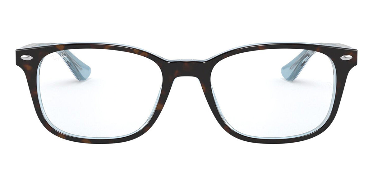 This square Ray-Ban optical comes in a havana on light blue frame.