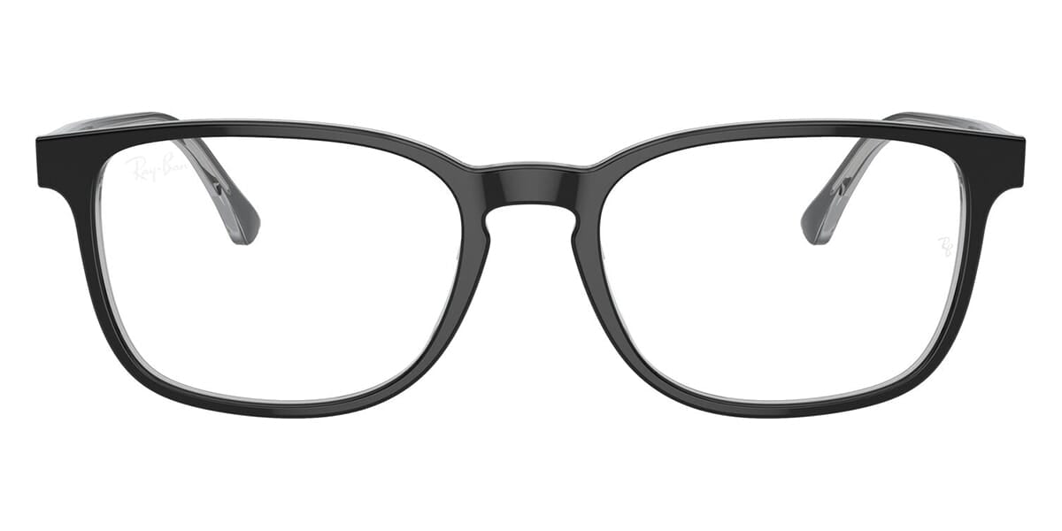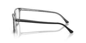 This square Ray-Ban optical comes in a dark grey on grey crystal frame.