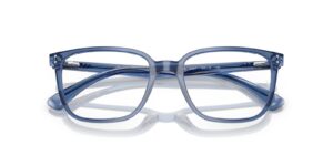 This square Ray-Ban optical comes in a light blue crystal frame.