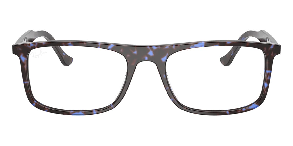 This rectangular Ray-Ban optical comes in a havana blue tortoise shell frame.