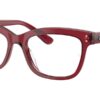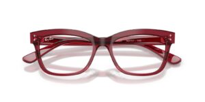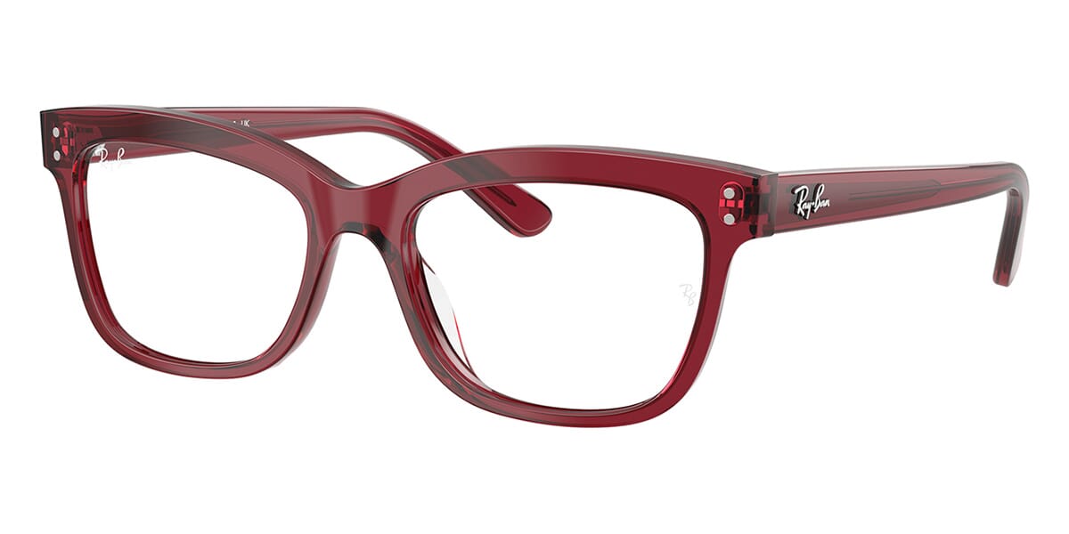 This square Ray-Ban optical comes in a burgundy crystal frame.