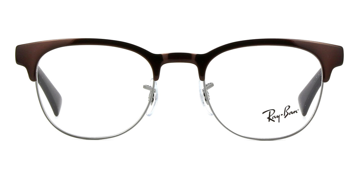 This round Ray-Ban optical comes in a gunmetal on brushed brown frame.