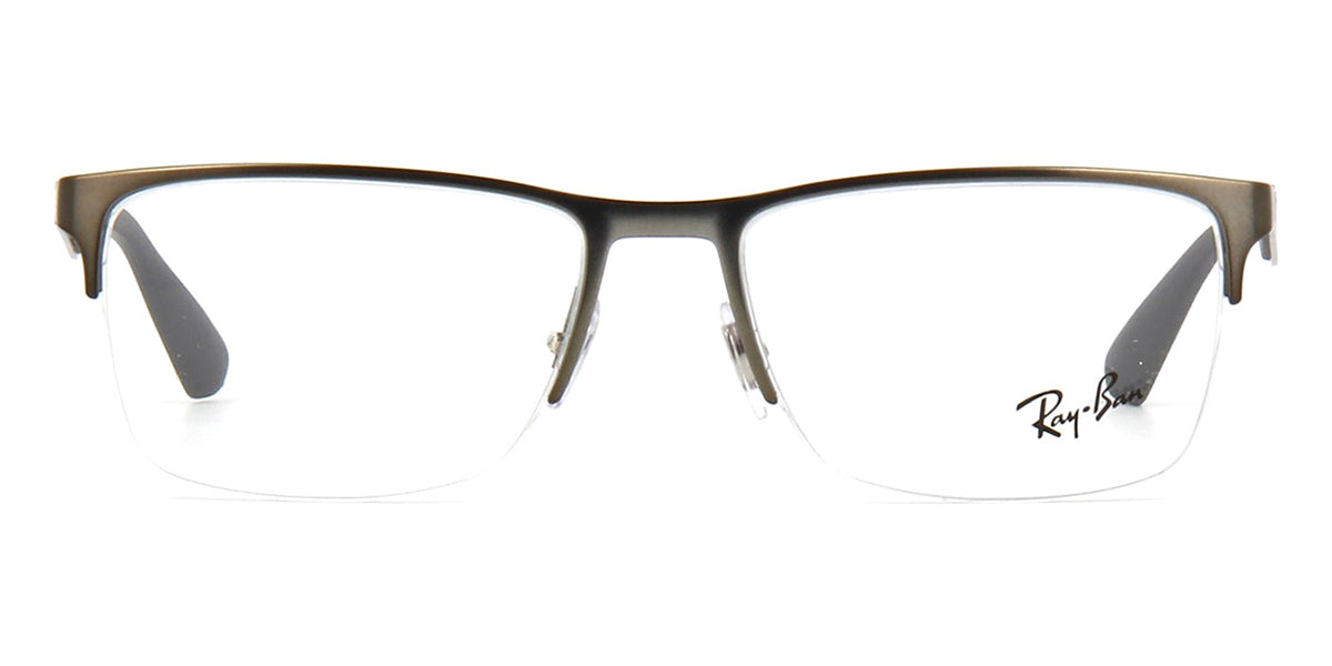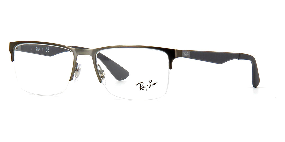 This rectangular Ray-Ban optical comes in a dark ruthenium frame.