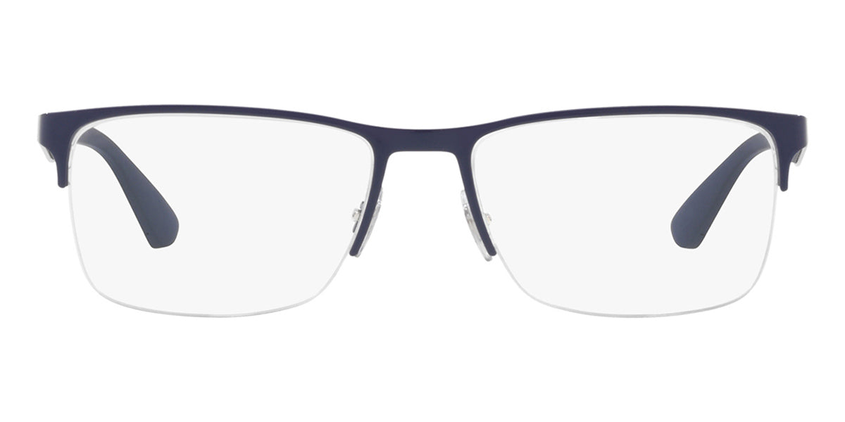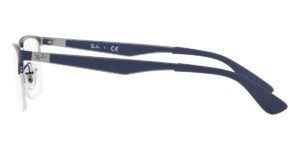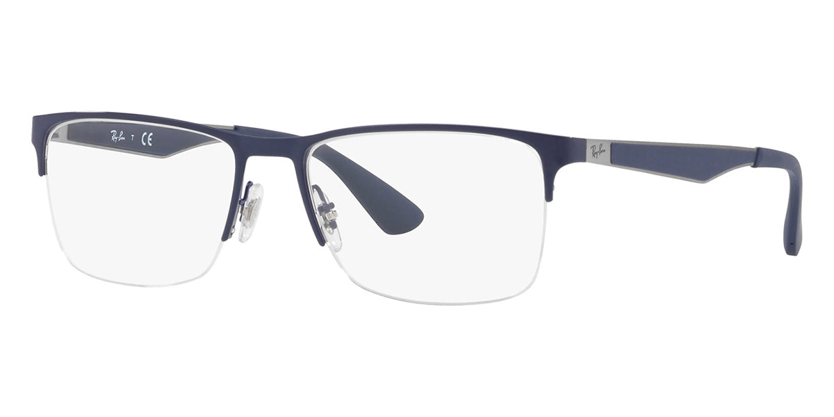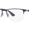 This rectangular Ray-Ban optical comes in a blue on gunmetal frame.
