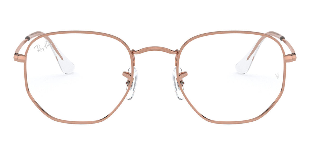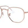 This square Ray-Ban optical comes in a shiny rose gold frame.