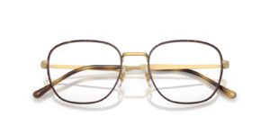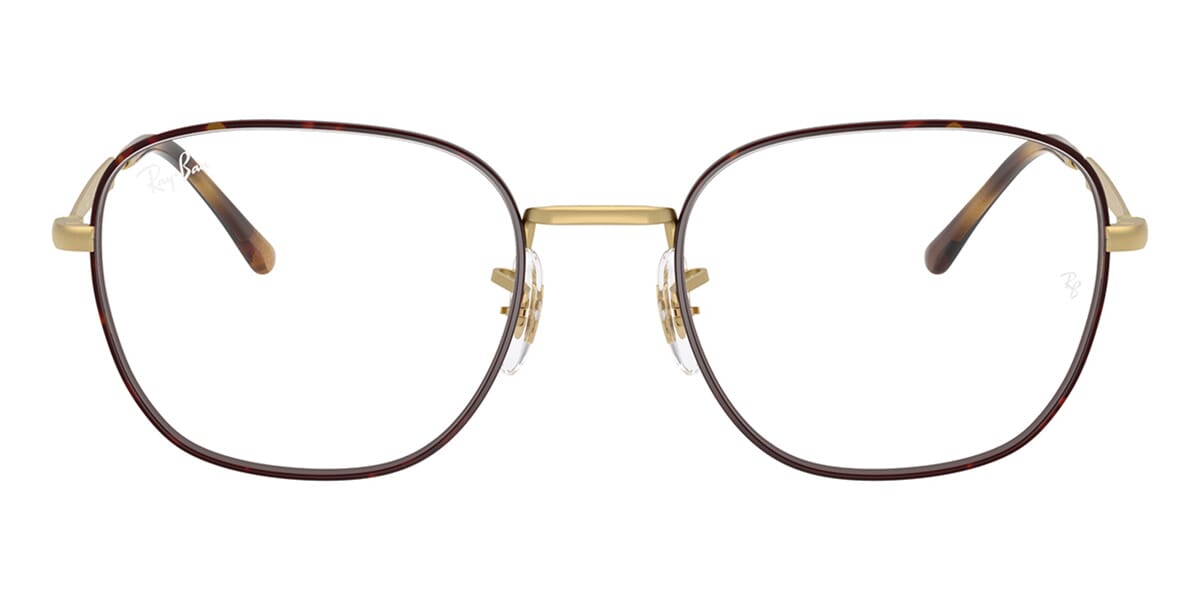 This square Ray-Ban optical comes in a matte havana on matte arista gold frame.