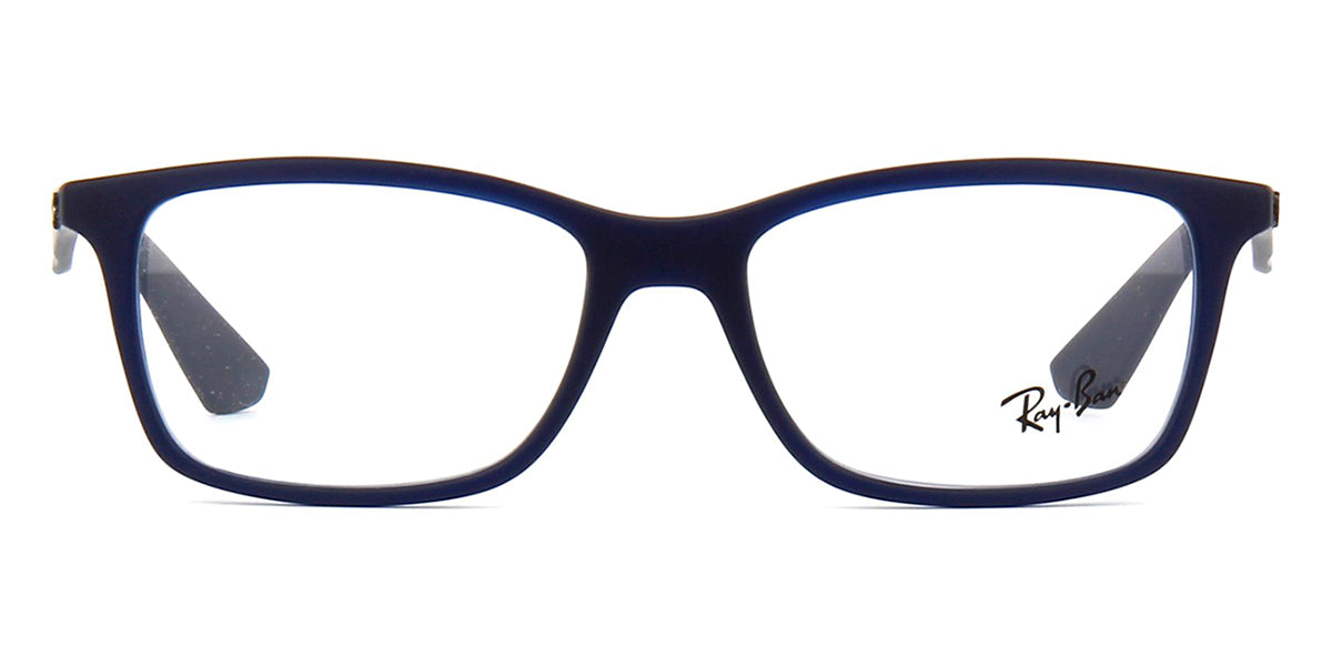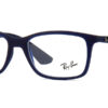 This rectangular Ray-Ban optical comes in a matte transparent blue frame.