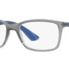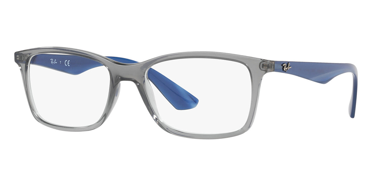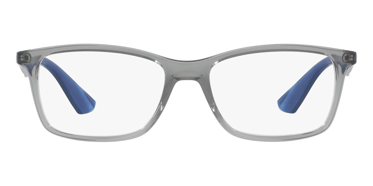 This rectangular Ray-Ban optical comes in a trasparent grey frame.