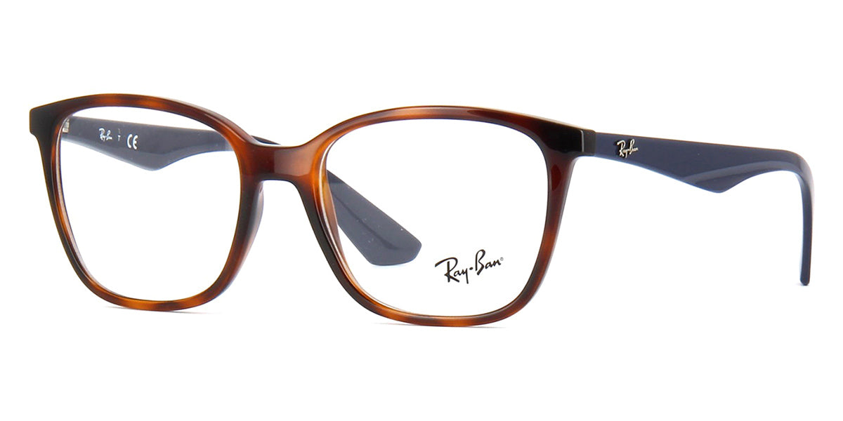 This rectangular Ray-Ban optical comes in a light havana and blue frame.