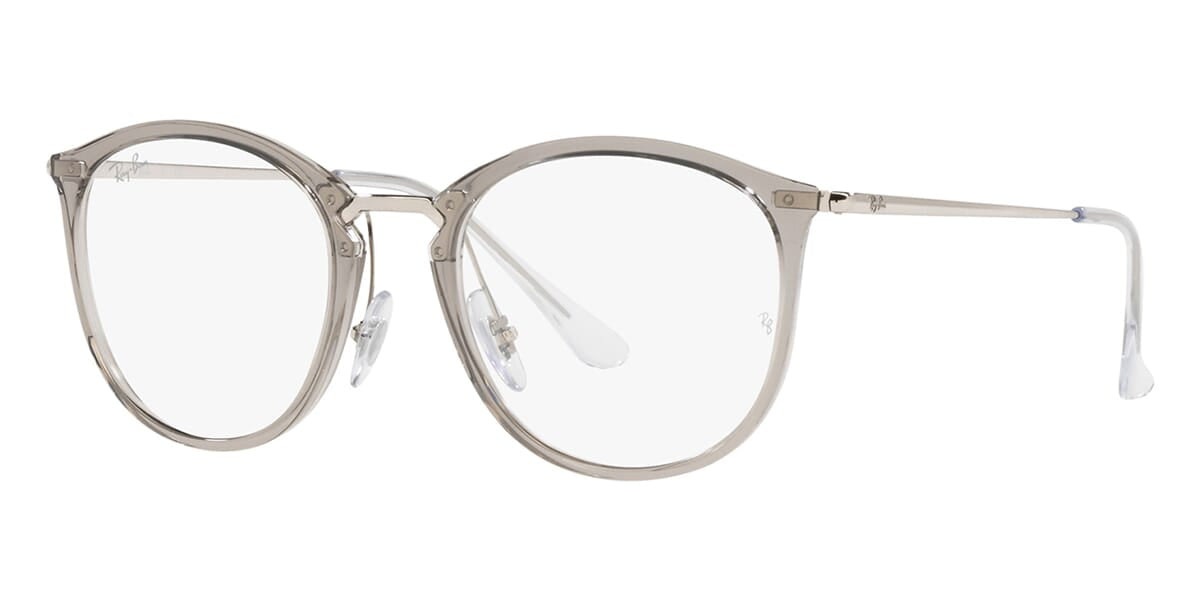 This round Ray-Ban optical comes in a grey crystal frame.
