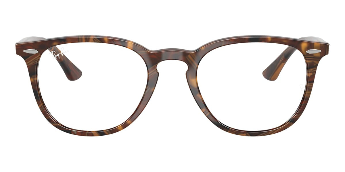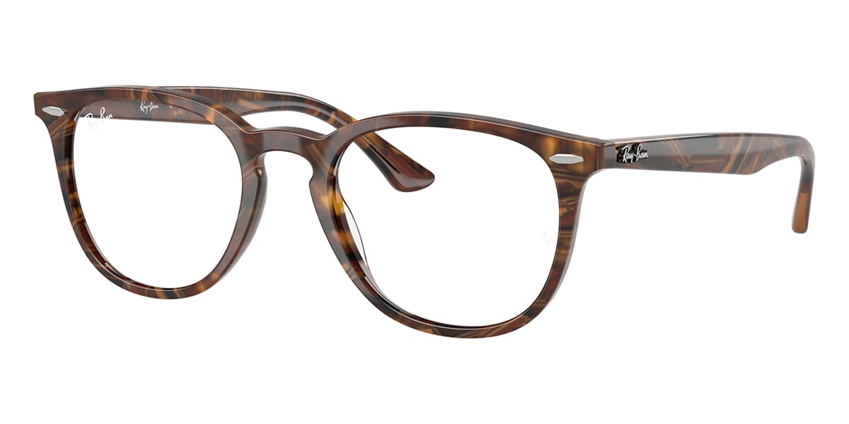 This round Ray-Ban optical comes in a transparent fantasy brown yellow frame.