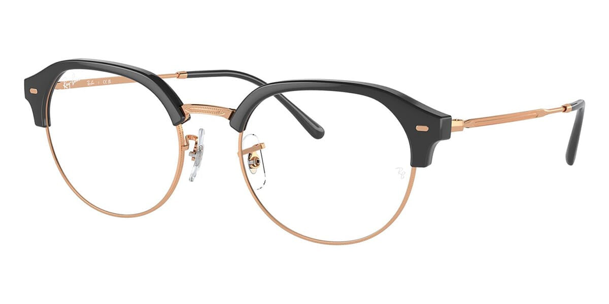 This round Ray-Ban optical comes in a dark grey on rose gold frame.