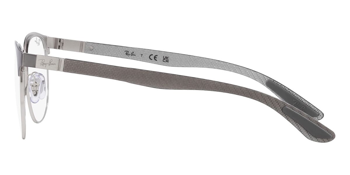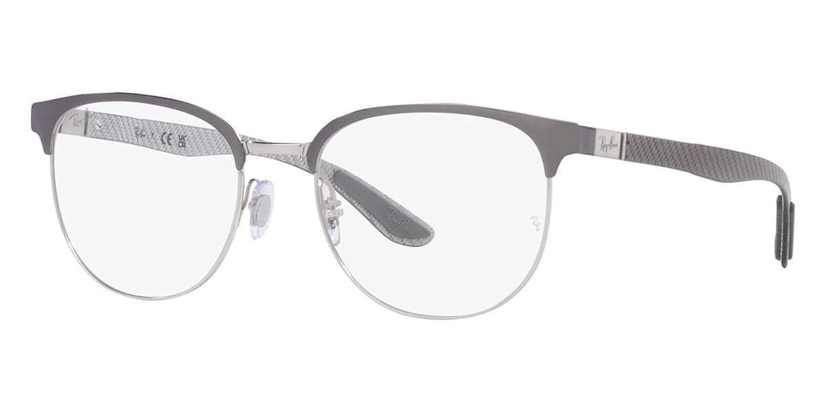 This round Ray-Ban optical comes in a grey on silver with carbon fibre frame.