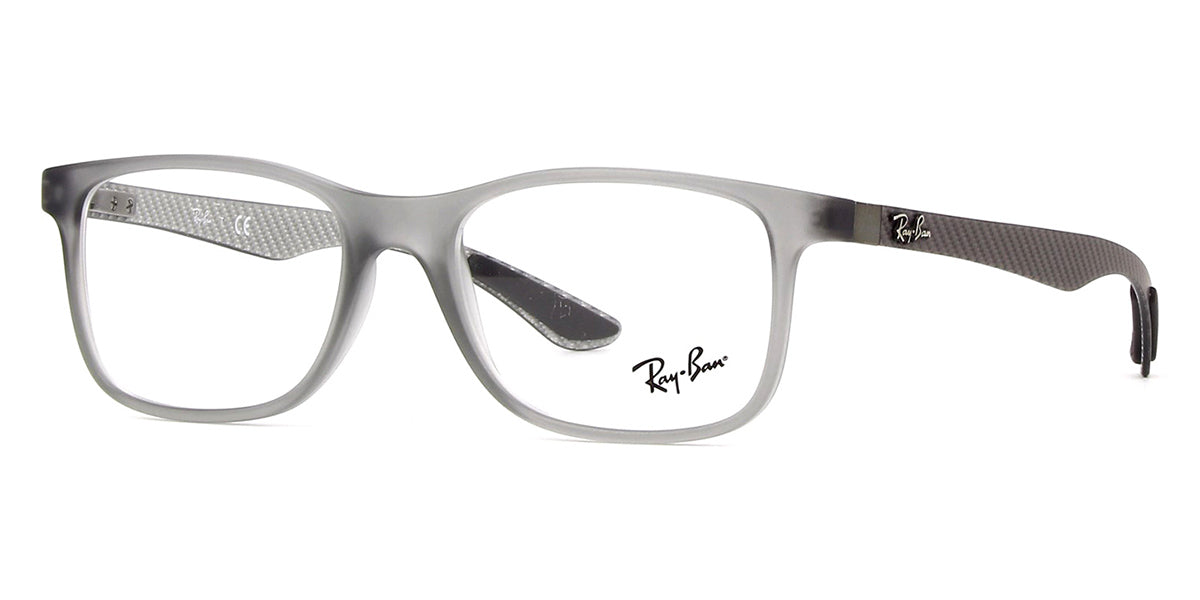 This rectangular Ray-Ban optical comes in a matte transparent grey frame.