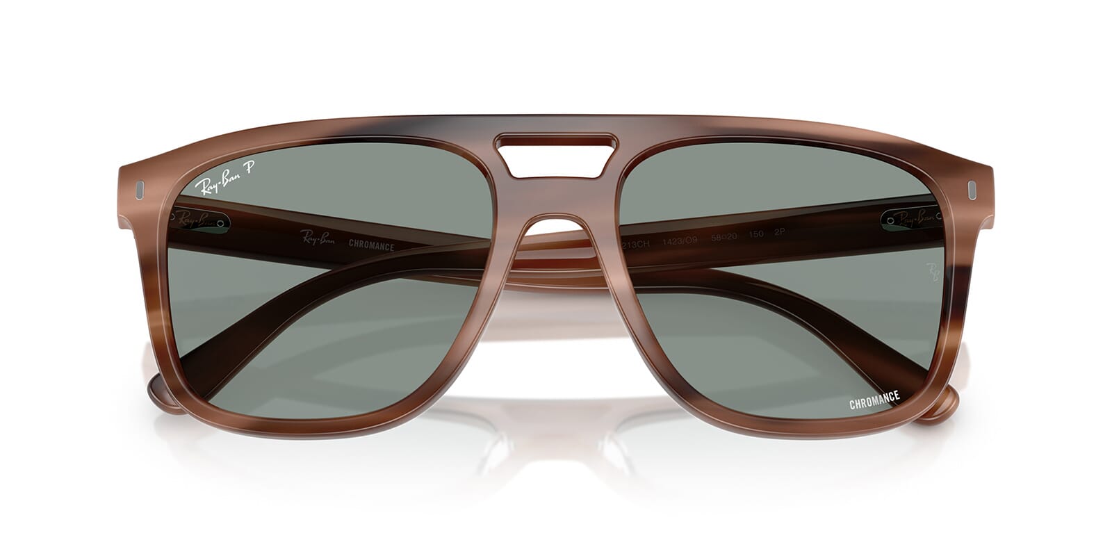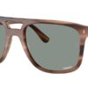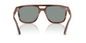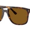 This square Ray-Ban sunglass comes in a havana brown frame with light blue chromance polarised lenses.