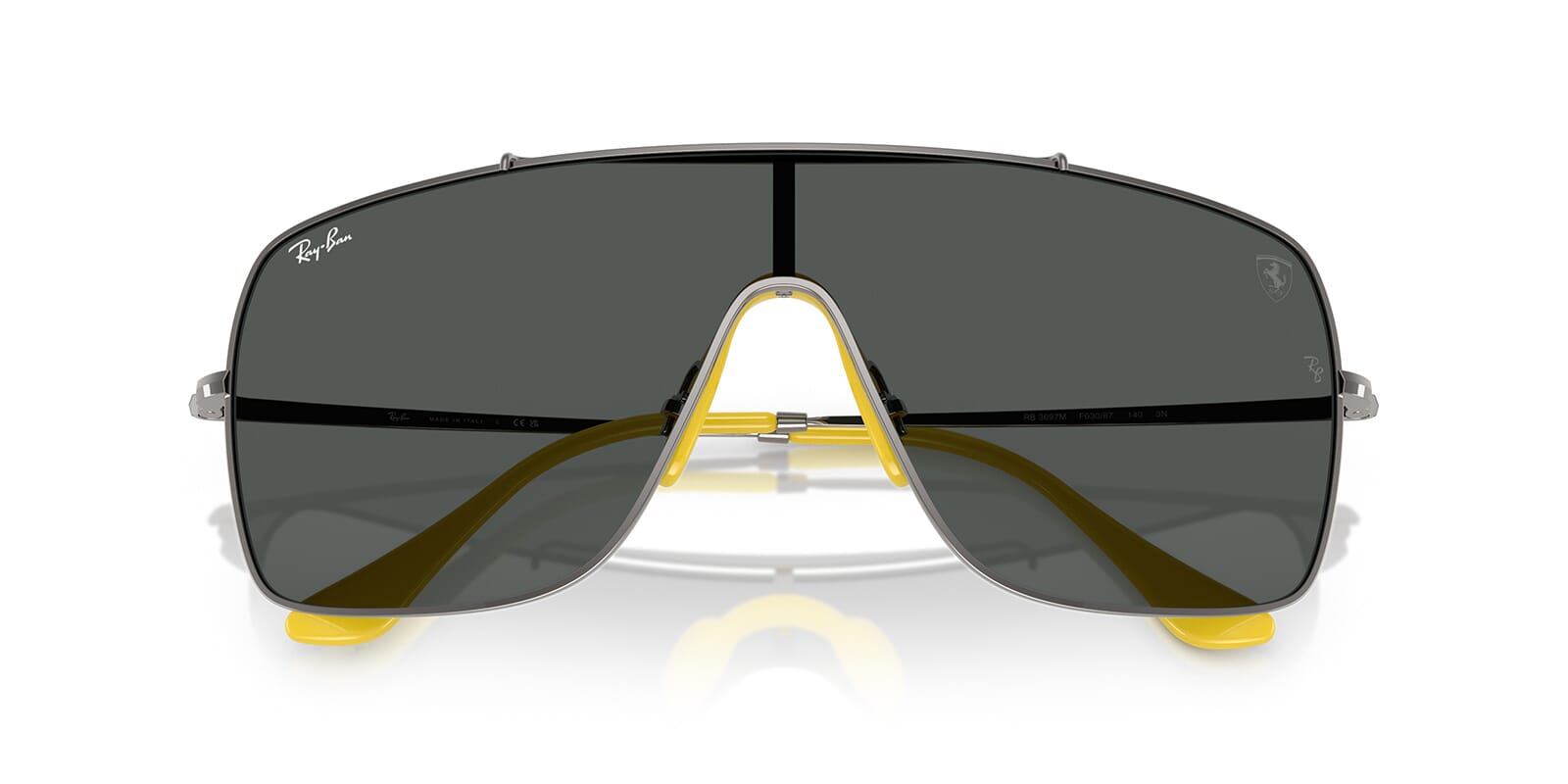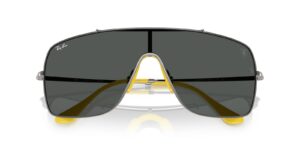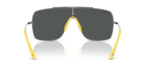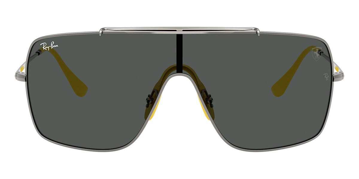 This square Ray-Ban sunglass comes in a gunmetal frame with grey lenses.