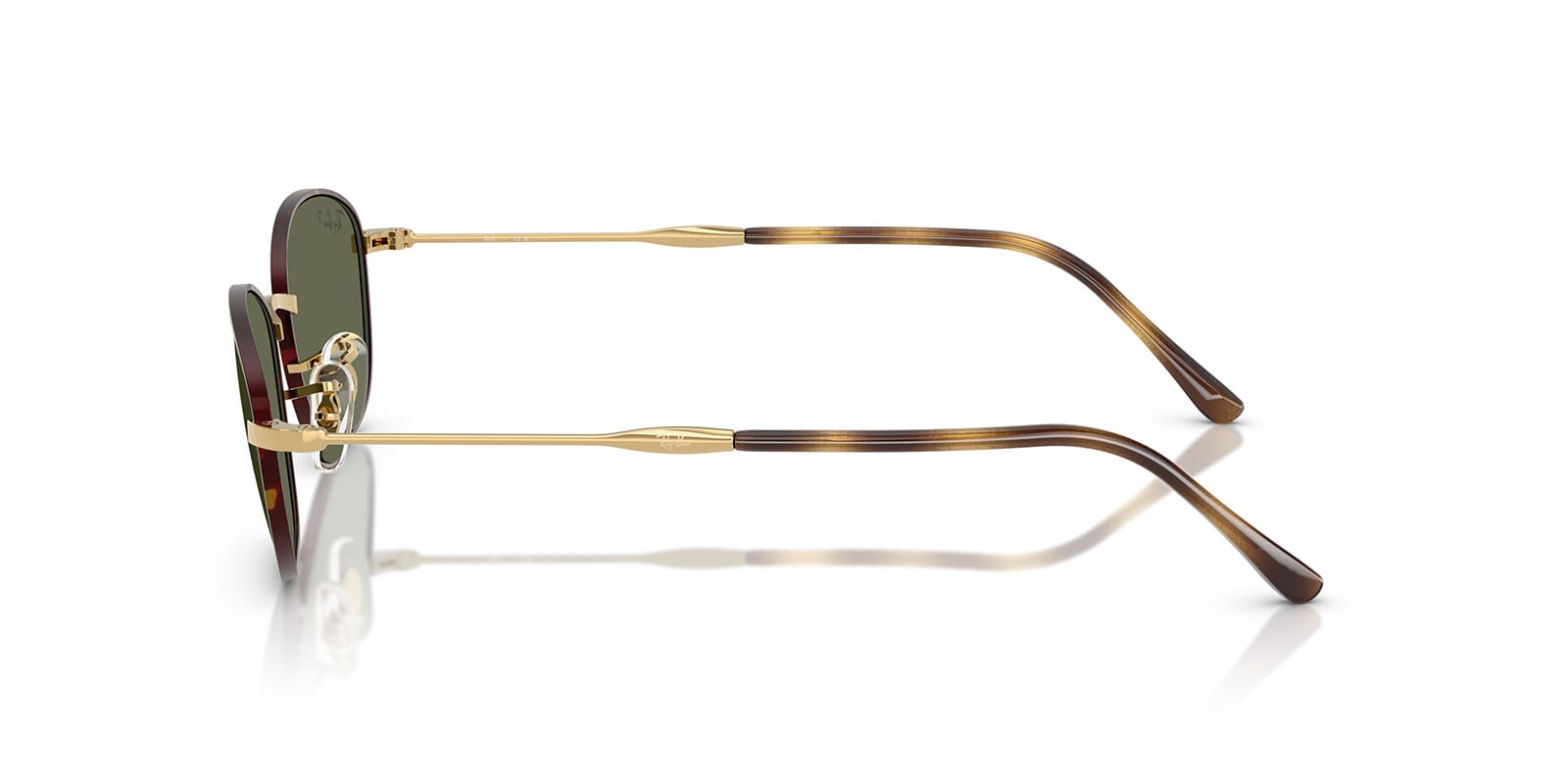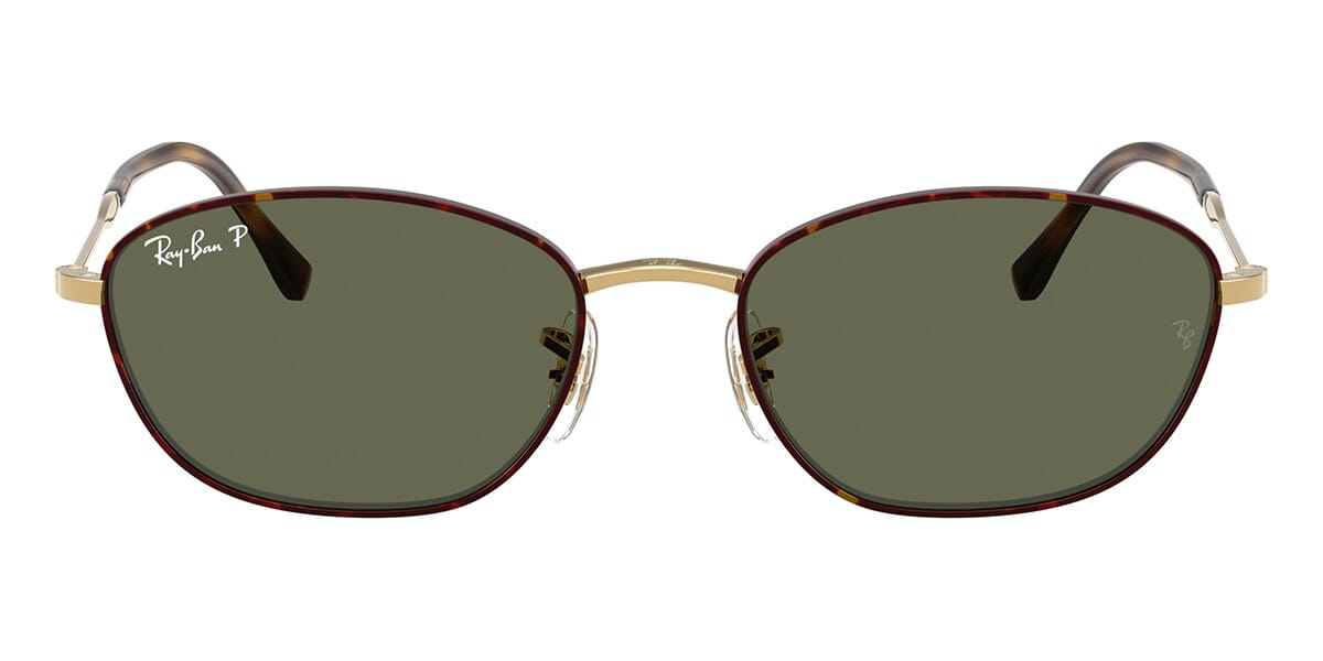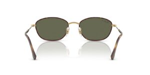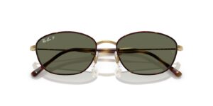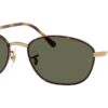 This rectangular Ray-Ban sunglass comes in a havana on gold frame with g-15 green lenses.