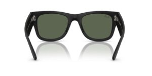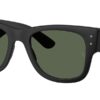This square Ray-Ban sunglass comes in a sand black frame with dark green lenses.