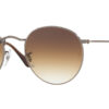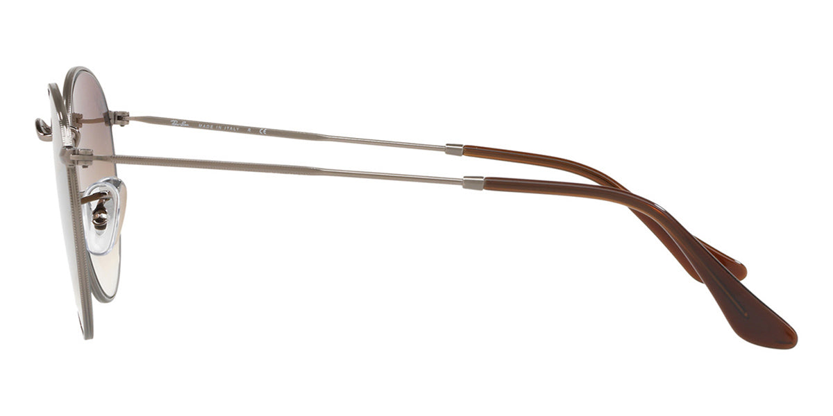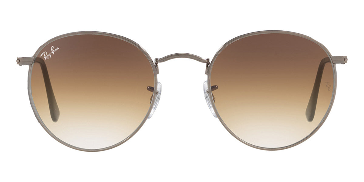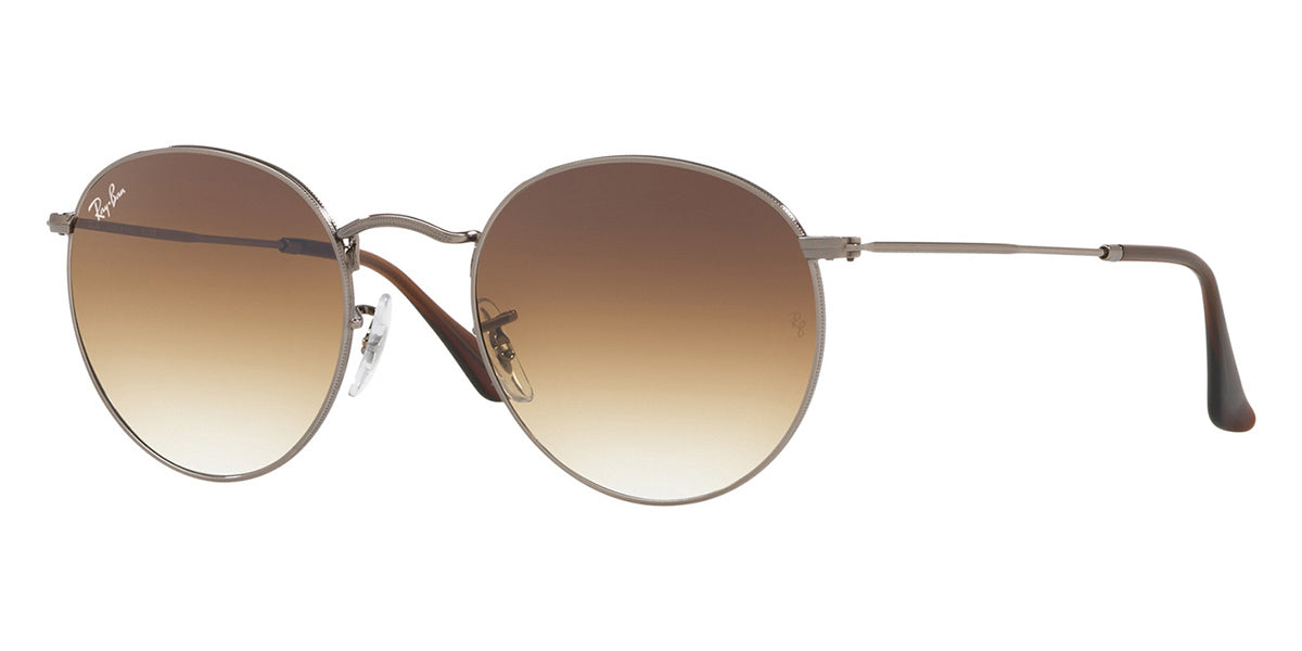This round Ray-Ban sunglass comes in a gunmetal frame with crystal brown gradient lenses.