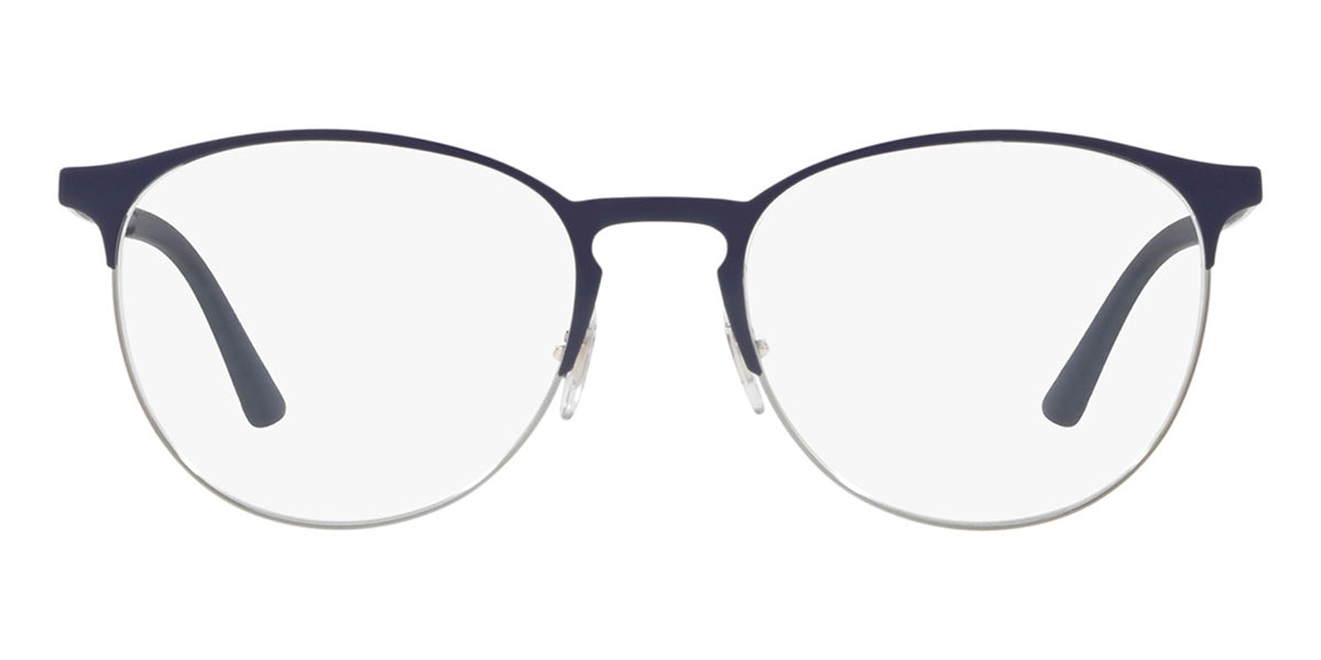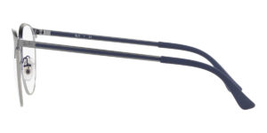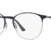 This round Ray-Ban optical comes in a blue on gunmetal frame.