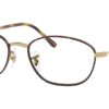 This rectangular Ray-Ban optical comes in a havana on gold frame.