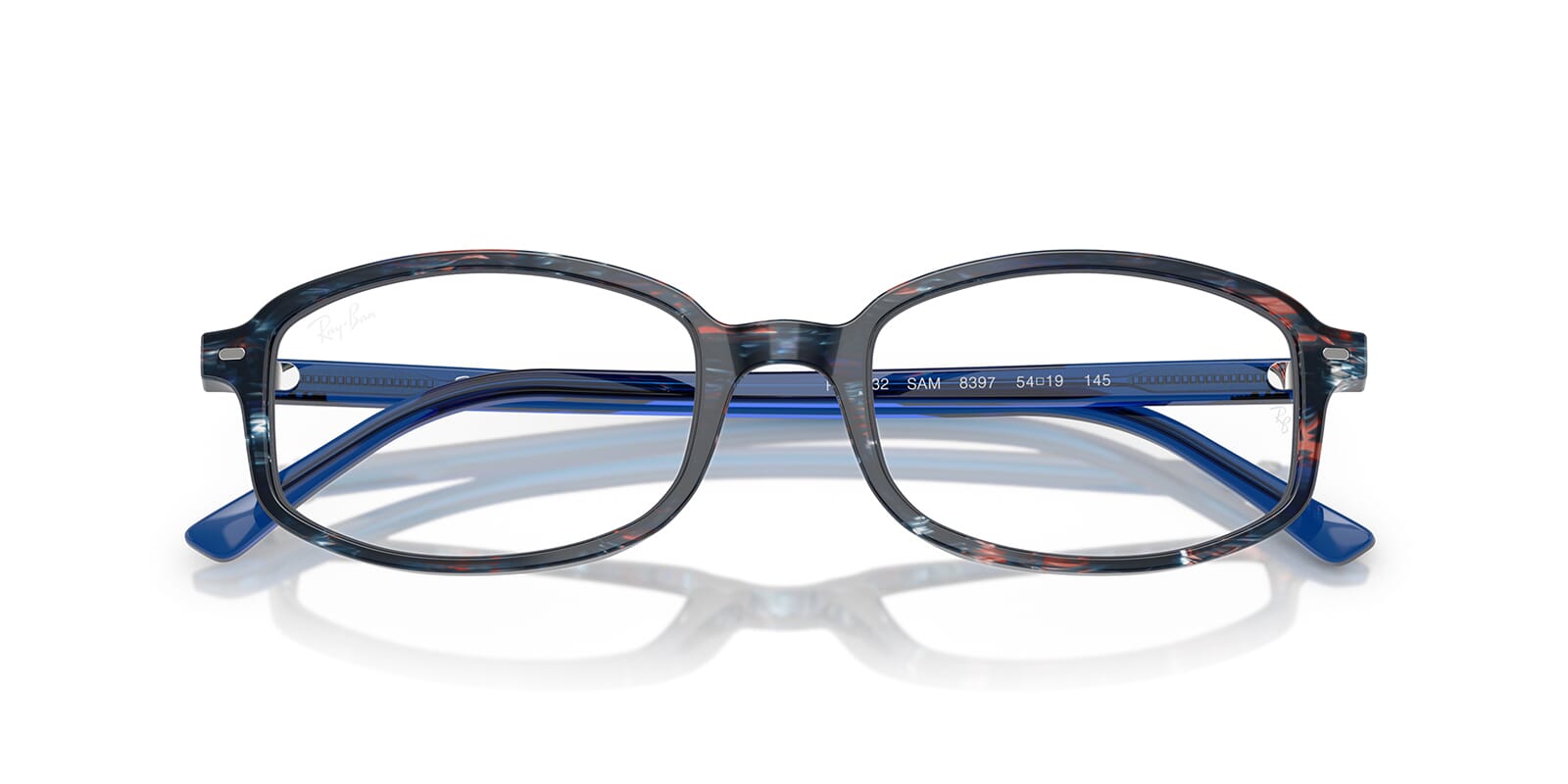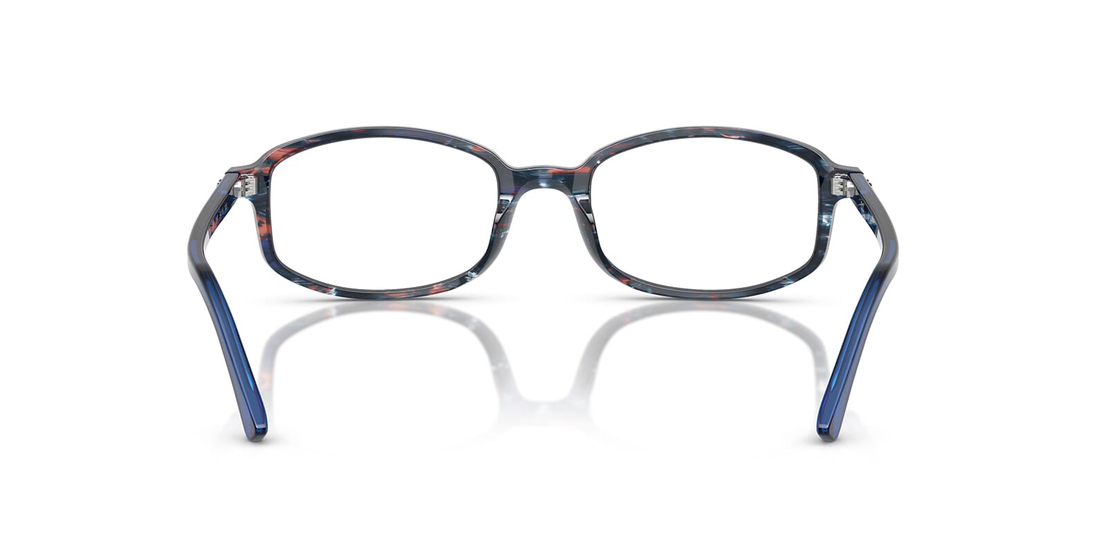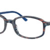 This rectangular Ray-Ban optical comes in a transparent shade fantasy blue frame.