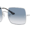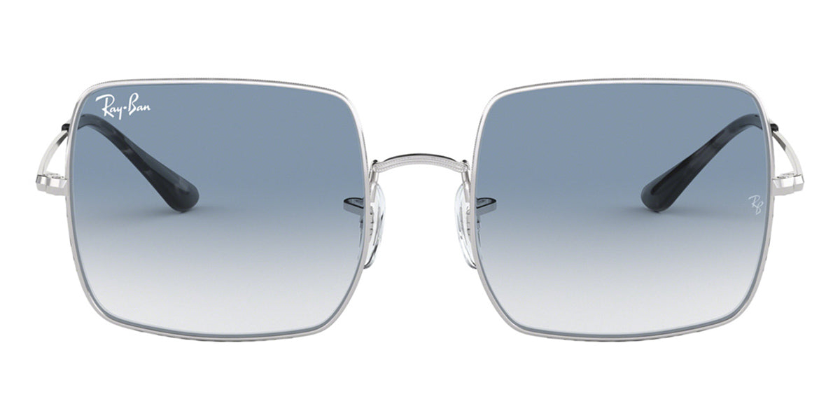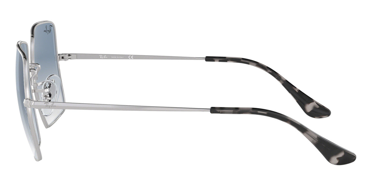 This square Ray-Ban sunglass comes in a silver frame with clear gradient blue lenses.