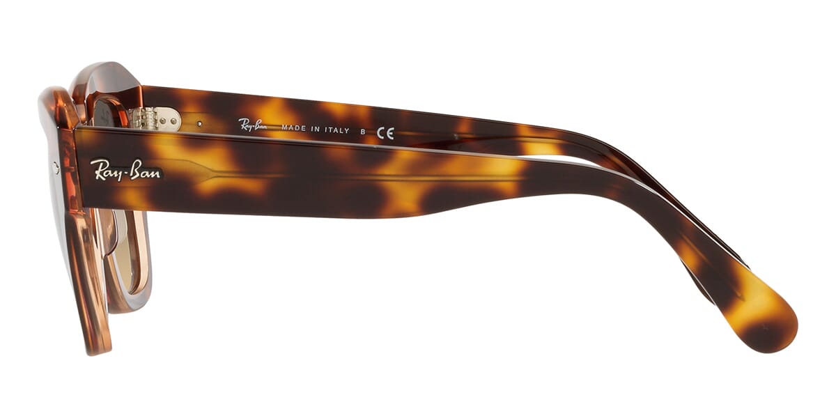 This square Ray-Ban sunglass comes in a havana on crystal pink frame with brown vintage lenses.
