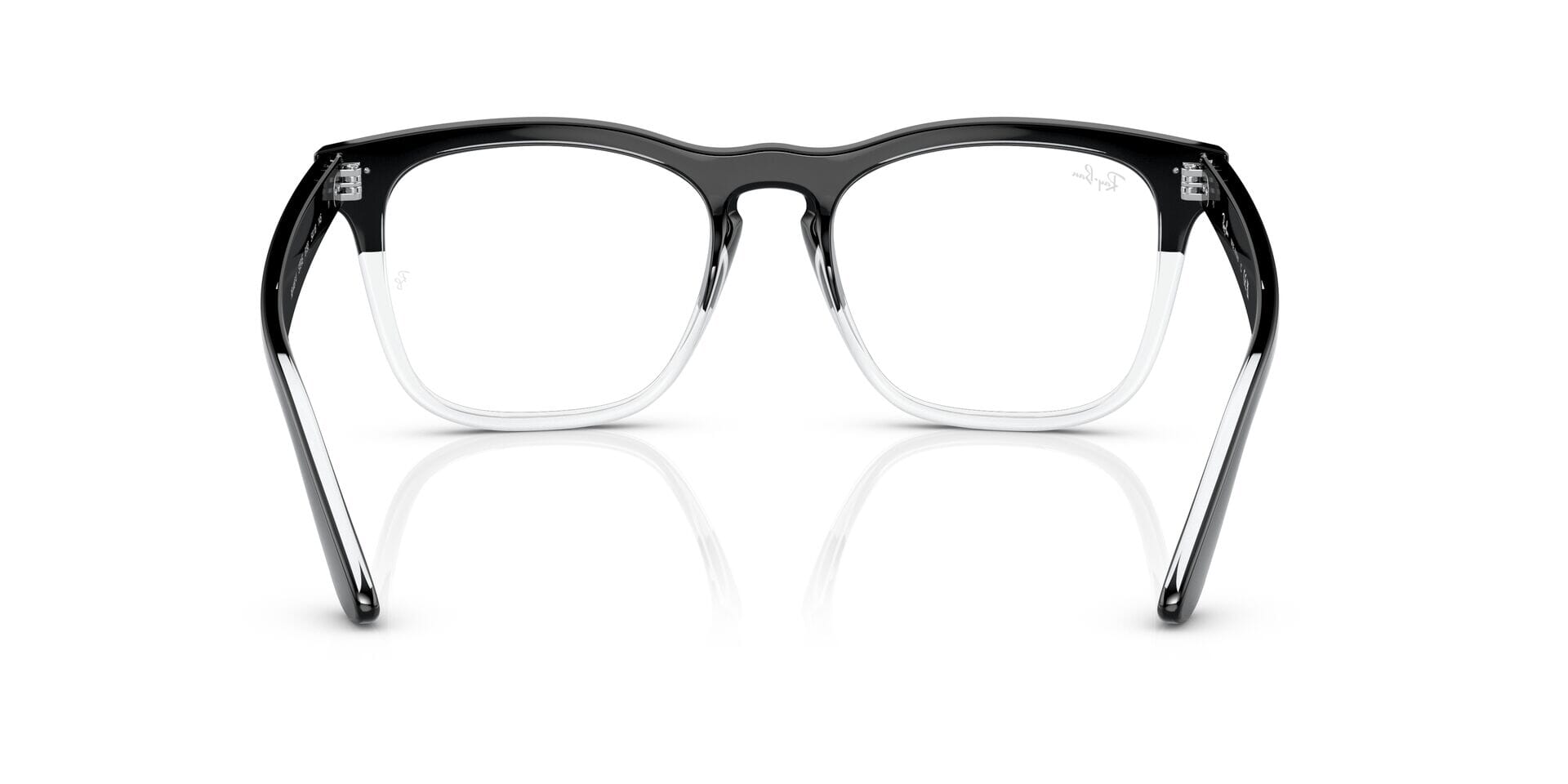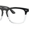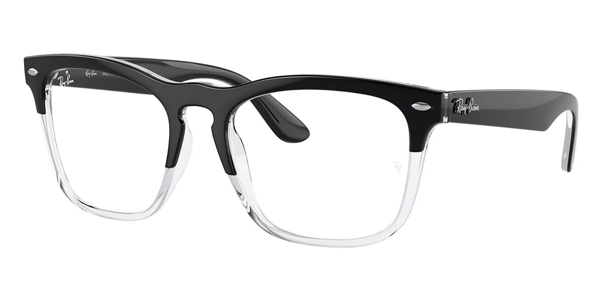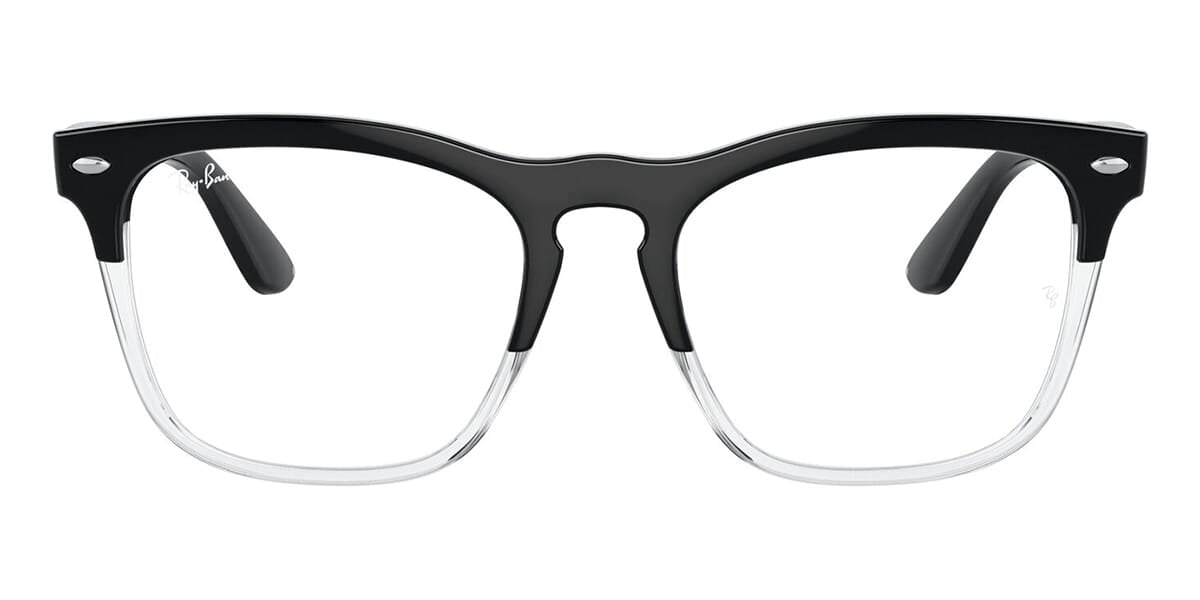 This square Ray-Ban optical comes in a black on crystal frame.