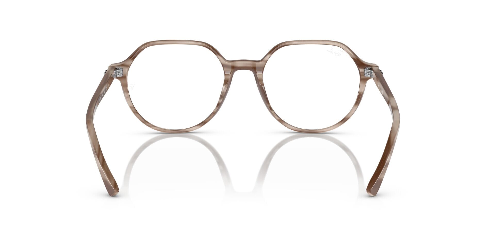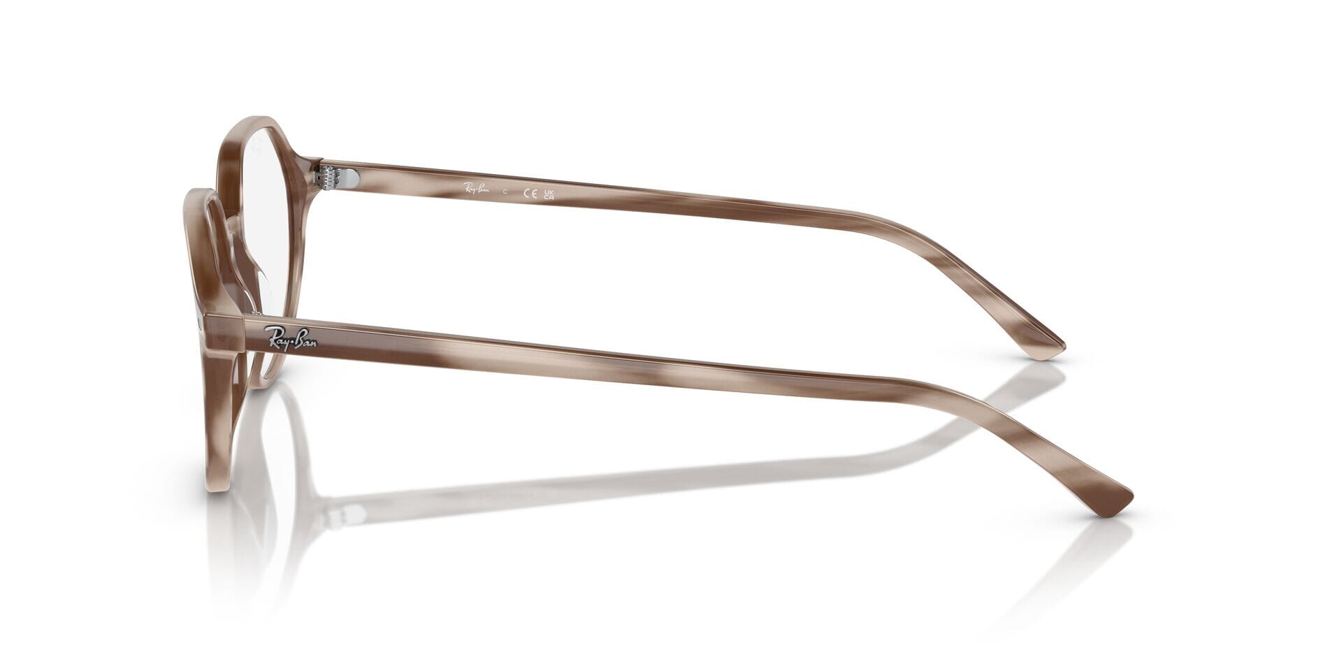 This round Ray-Ban optical comes in a striped beige frame.
