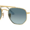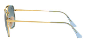 This square Ray-Ban sunglass comes in a gold frame with blue to grey gradient lenses.