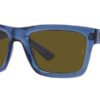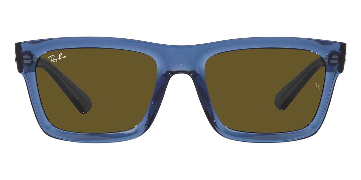 This rectangular Ray-Ban sunglass comes in a dark blue crystal frame with dark brown lenses.