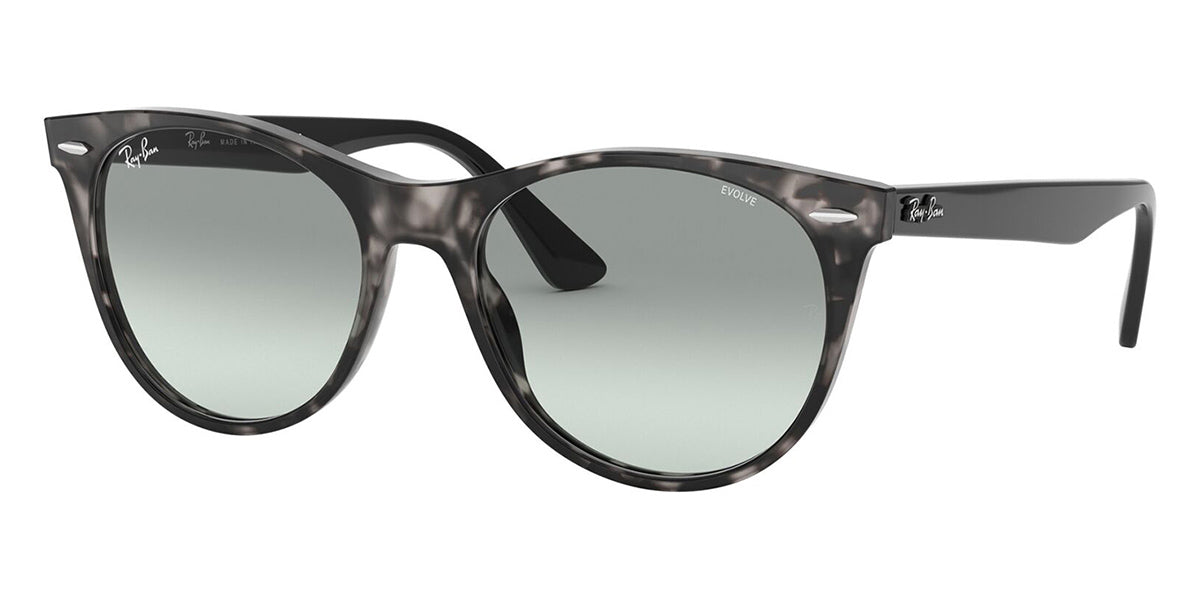 This square Ray-Ban sunglass comes in a grey havana frame with photochromic azure to blue gradient lenses.