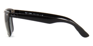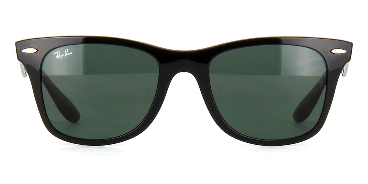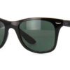 This wayfarer Ray-Ban sunglass comes in a black frame with green lenses.