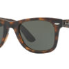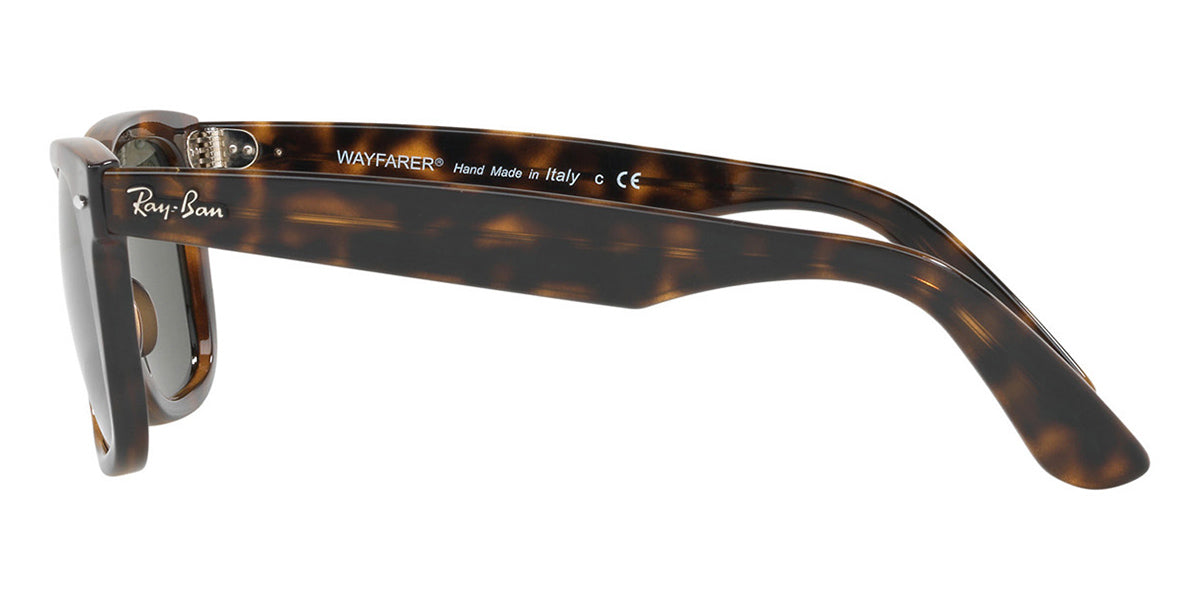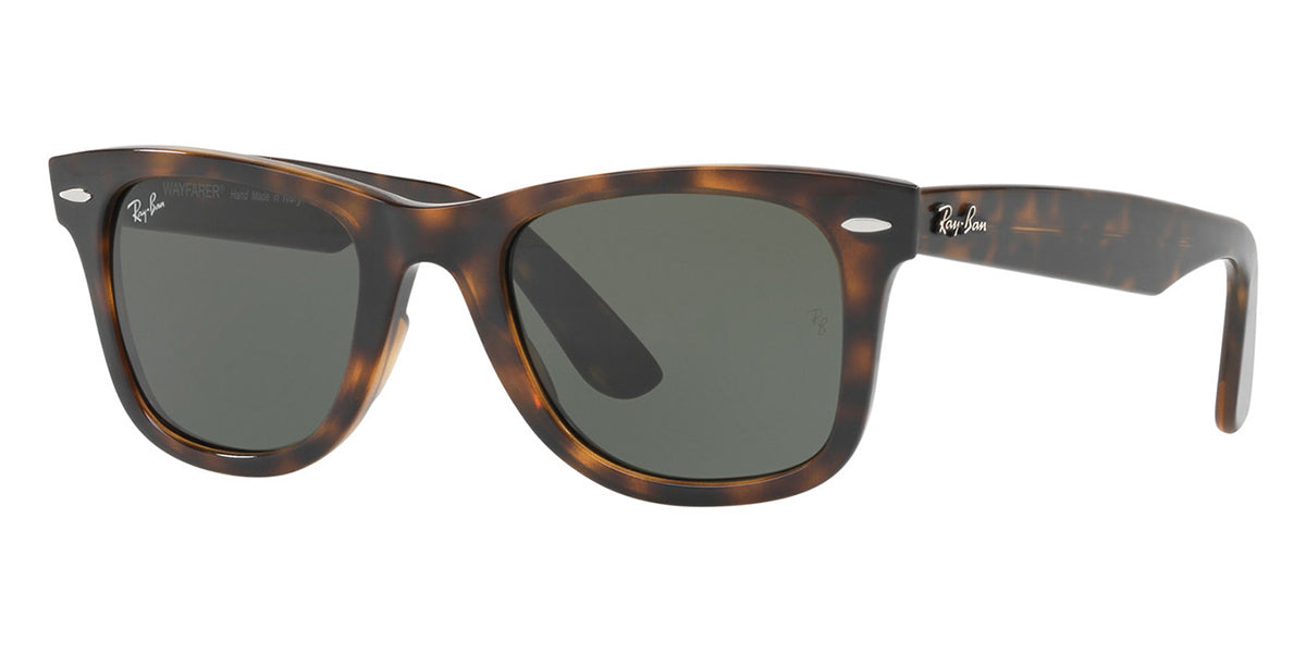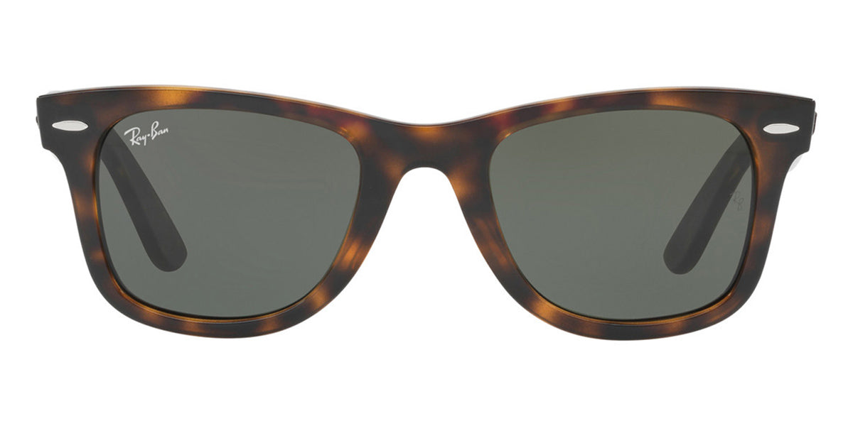 This wayfarer Ray-Ban sunglass comes in a havana frame with green lenses.