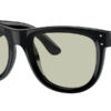 This square Ray-Ban sunglass comes in a black frame with light green lenses.