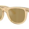 This square Ray-Ban sunglass comes in a opal yellow frame with brown with gold mirror lenses.