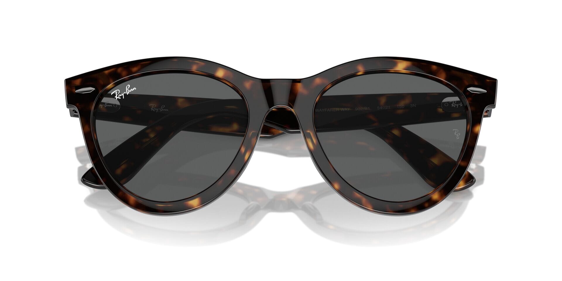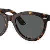 This round Ray-Ban sunglass comes in a havana frame with dark grey lenses.