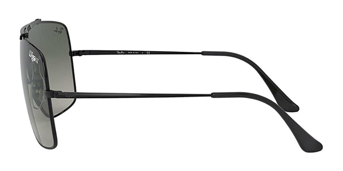 This square Ray-Ban sunglass comes in a black frame with grey to dark grey gradient lenses.