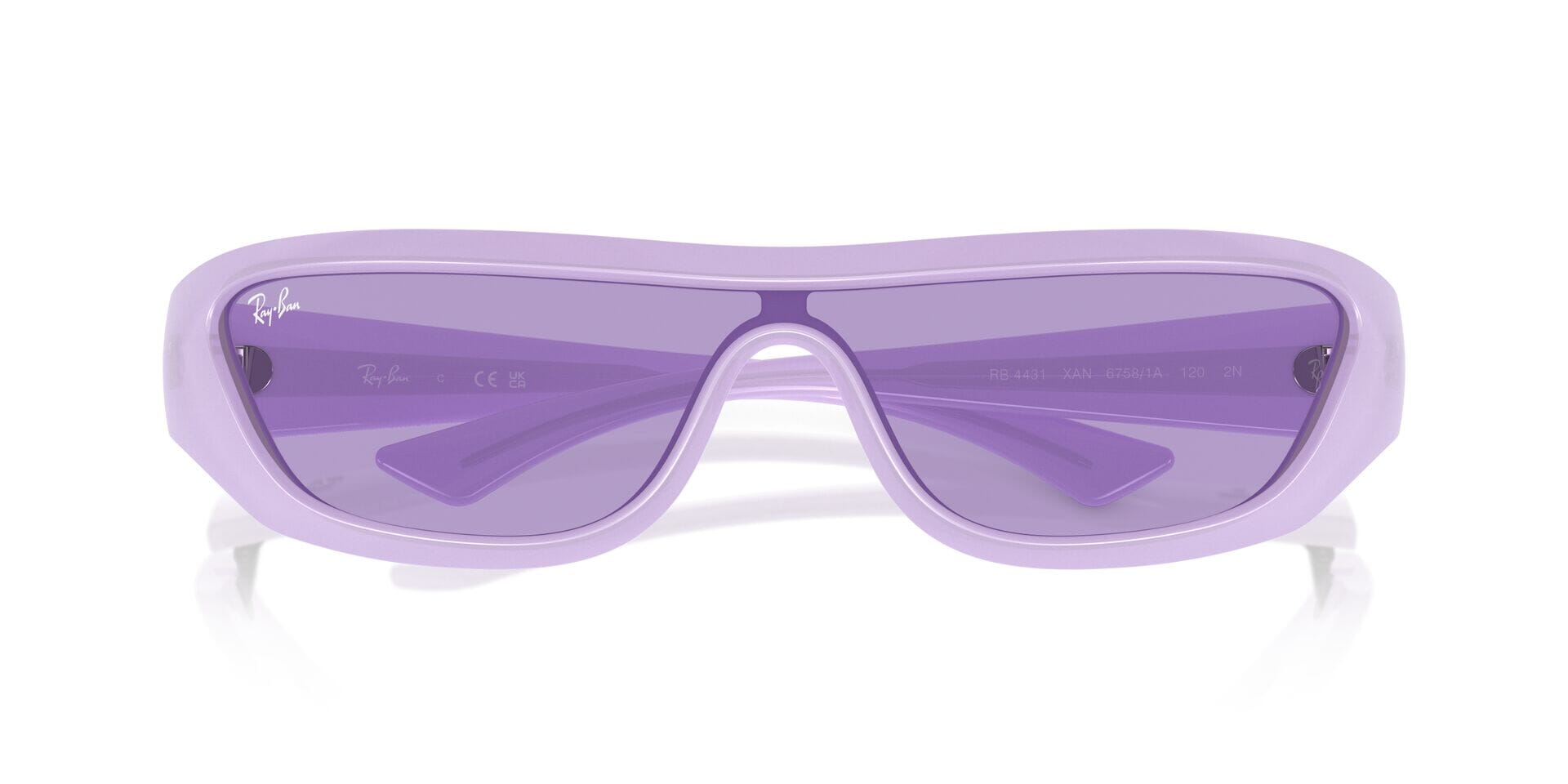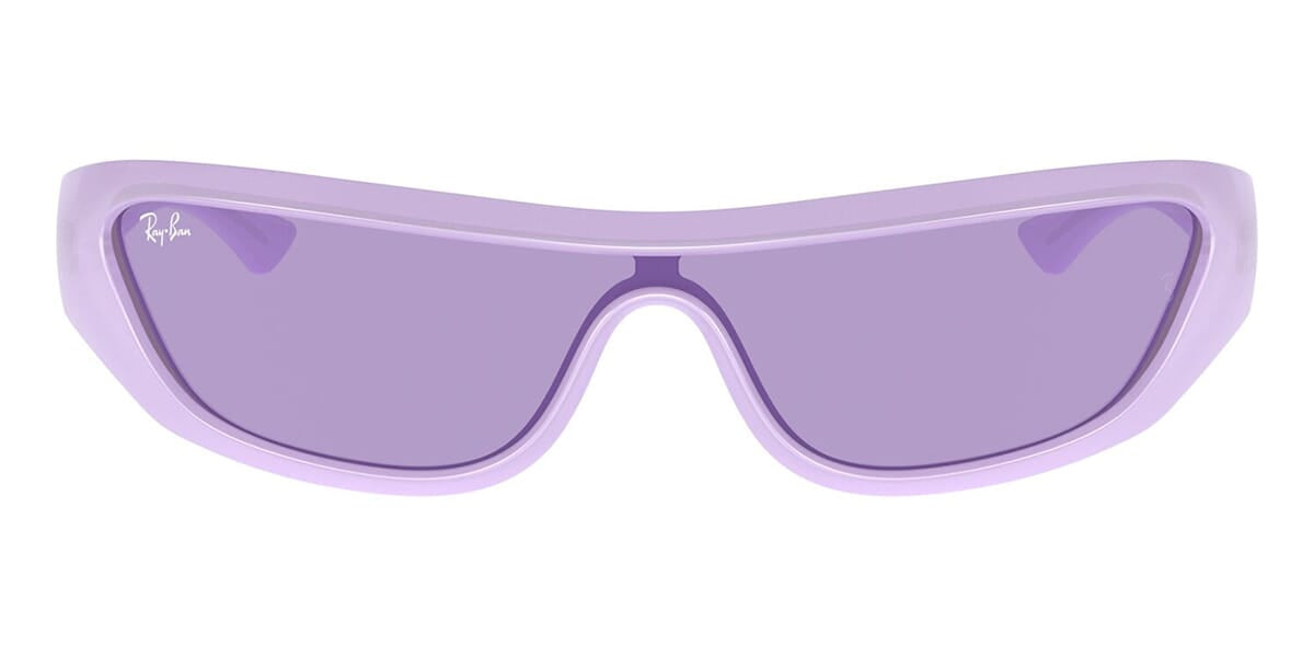 This shield Ray-Ban sunglass comes in a lilac frame with violet lenses.