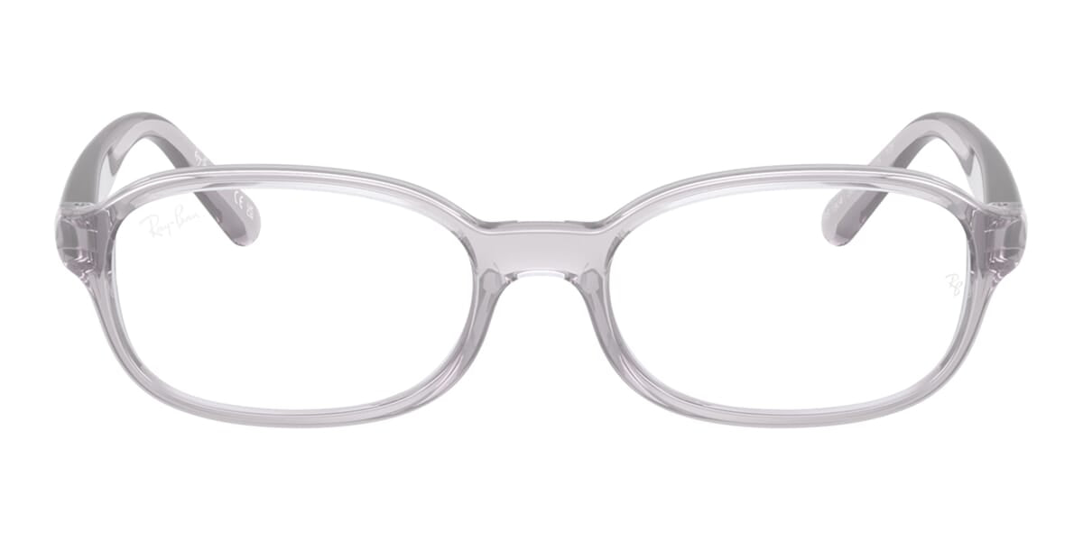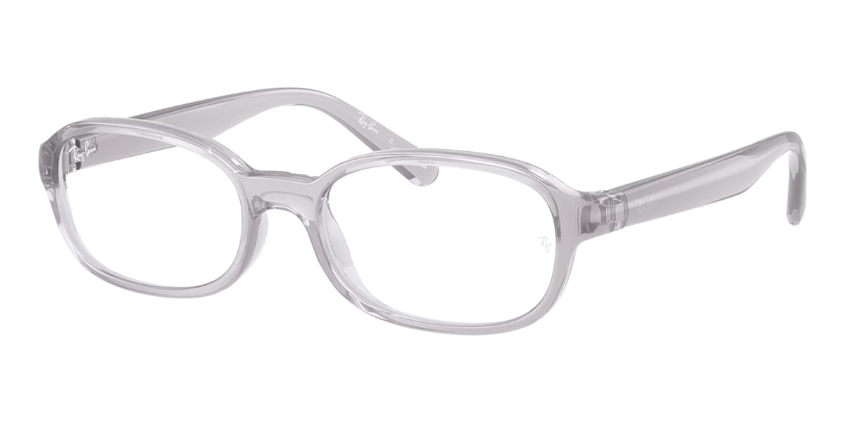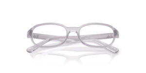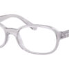 This rectangular Ray-Ban optical comes in a transparent grey frame.