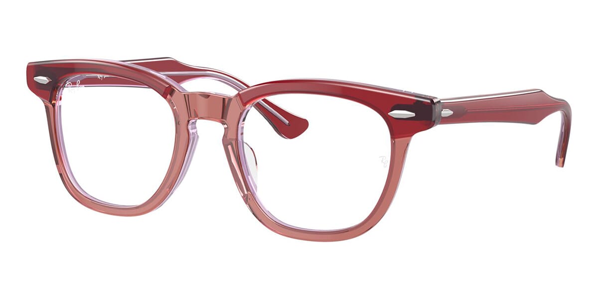 This square Ray-Ban optical comes in a red with orange and light purple frame.
