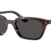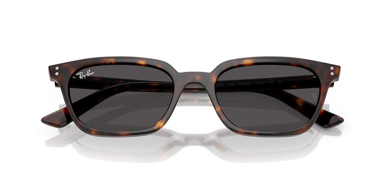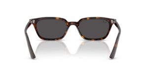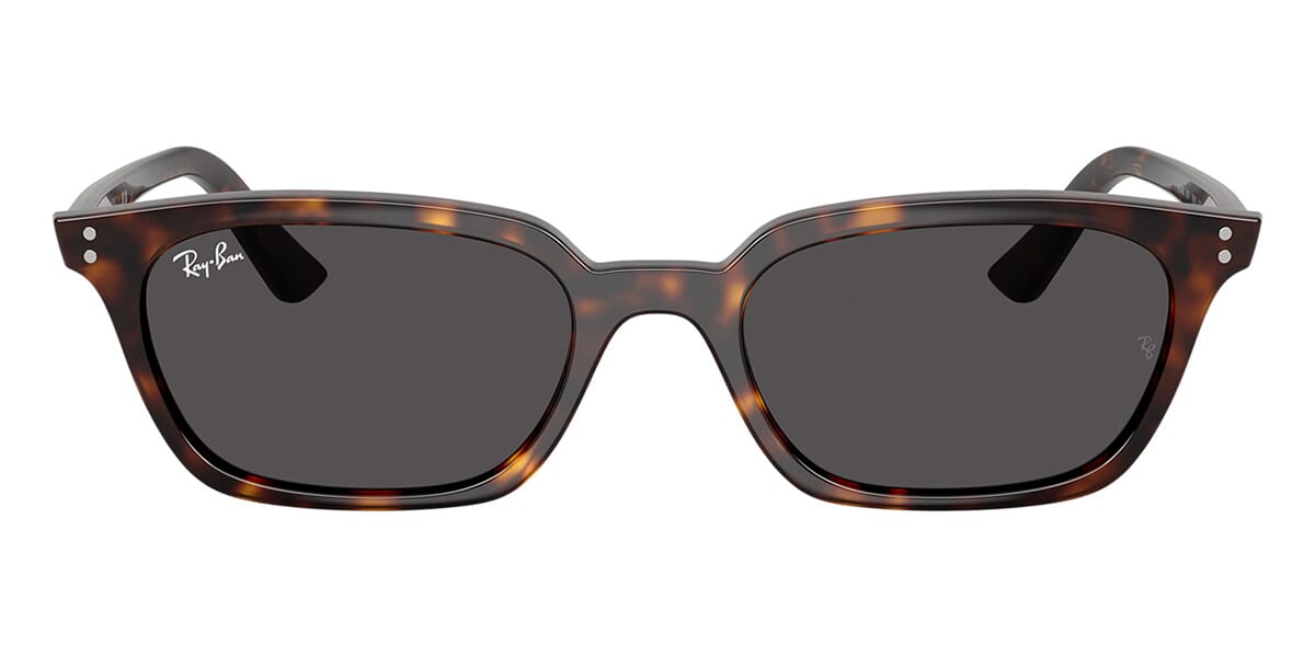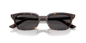 This rectangular Ray-Ban sunglass comes in a havana frame with dark grey lenses.