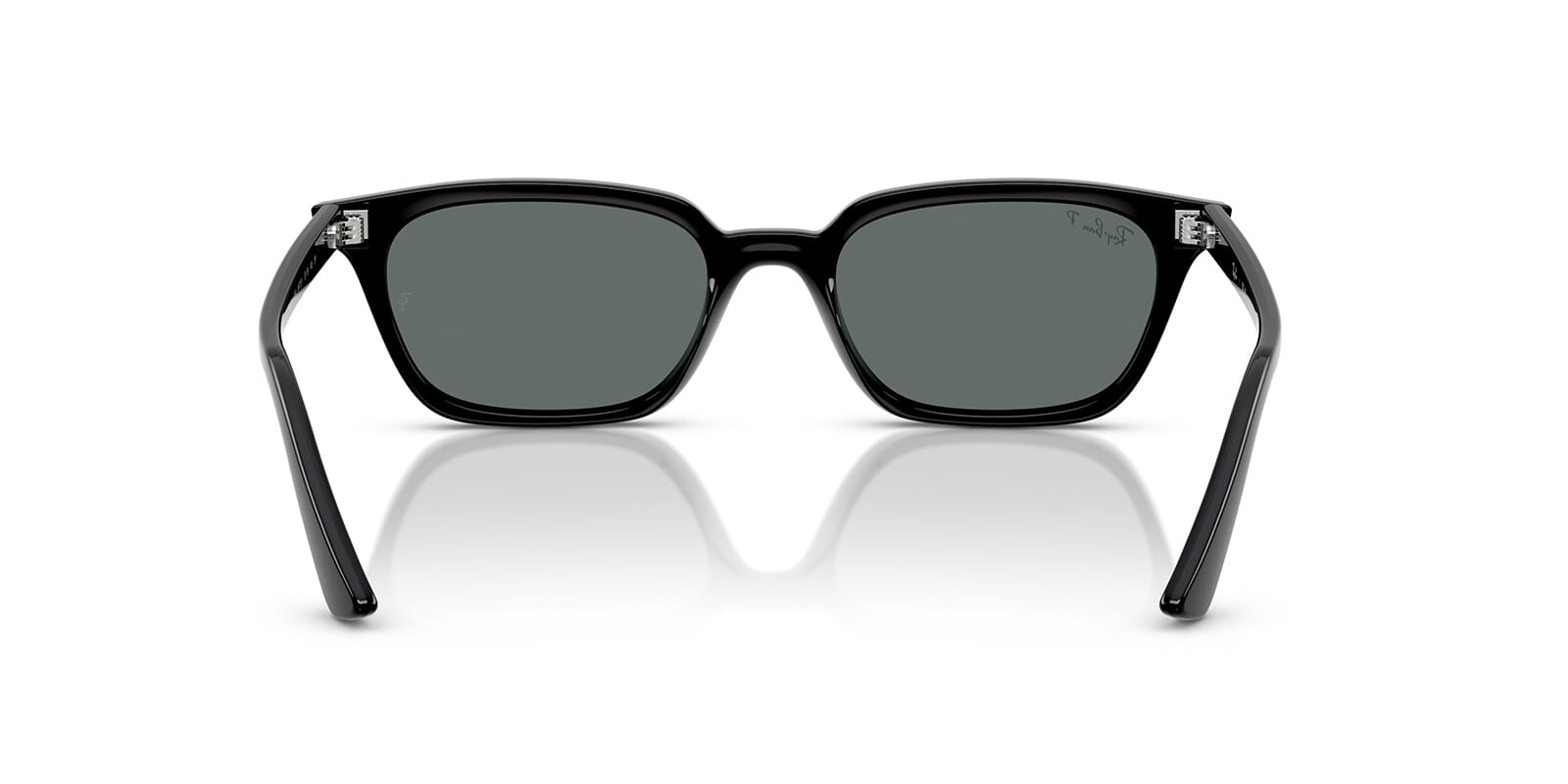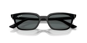 This rectangular Ray-Ban sunglass comes in a black frame with dark grey polarised lenses.