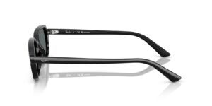 This rectangular Ray-Ban sunglass comes in a black frame with dark grey polarised lenses.