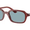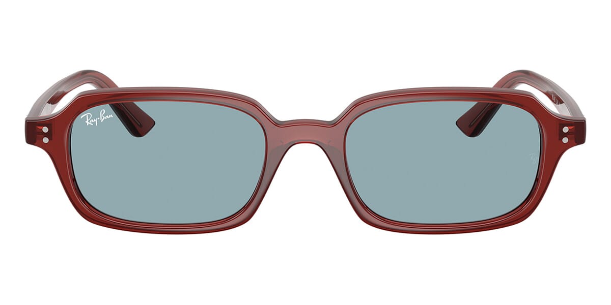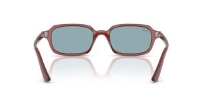 This rectangular Ray-Ban sunglass comes in a rosty brown frame with blue lenses.